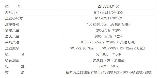 ZJ-FFU-EC400型號(hào)FFU技術(shù)參數(shù)