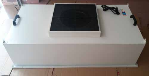 FFU層流罩設(shè)有初效過濾器、高效過濾器兩級(jí)過濾網(wǎng)。風(fēng)機(jī)從FFU頂部將空氣吸入并經(jīng)初、高效過濾器過濾,過濾后的潔凈空氣在整個(gè)出風(fēng)面以0.45M/S±20%的風(fēng)速勻速送出。