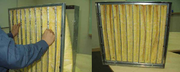 定期檢查過濾器進(jìn)風(fēng)面有無雜物堵塞情況、濾料表面有無破損;如有物品堵塞表面,則應(yīng)清除;濾料表面破損嚴(yán)重,則必須更換新的濾料或更換新的過濾器重新安裝;過濾器安裝時(shí),要保證與框體的壓邊處密封性良好,以防止風(fēng)量泄露;不可用重物去撞擊過濾器的表面,不可用力去拉過濾器的濾料表面;安裝時(shí),應(yīng)使濾袋口長度方向垂直于地面,以保證送風(fēng)的過濾效果和增加使用壽命。
