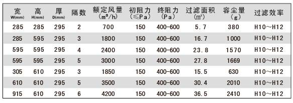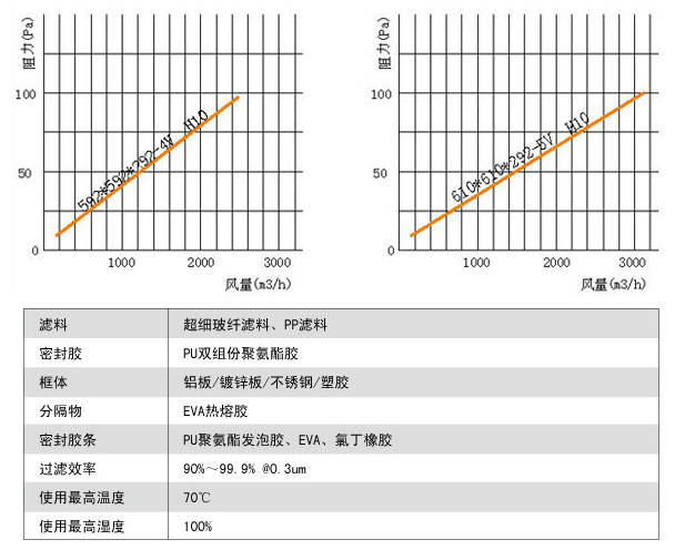 過(guò)濾效率:99.97%~99.995%@0.3um