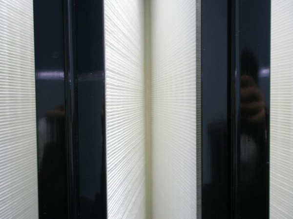過(guò)濾器濾材兩面180度翻折,形成鍥形褶層。濾料折彎時(shí)有兩道壓痕,使其在隔板的尾端處形成鍥形盒式摺層,鍥形盒式褶層可以防止濾料破損。有些過(guò)濾器生產(chǎn)商采用了單壓痕或滾痕式濾料褶層,甚至簡(jiǎn)單地人工折紙,在這種惰況下,濾料很容易被波紋形隔板尖銳的折頂損壞。或在過(guò)多搬運(yùn)過(guò)程中損壞濾紙。